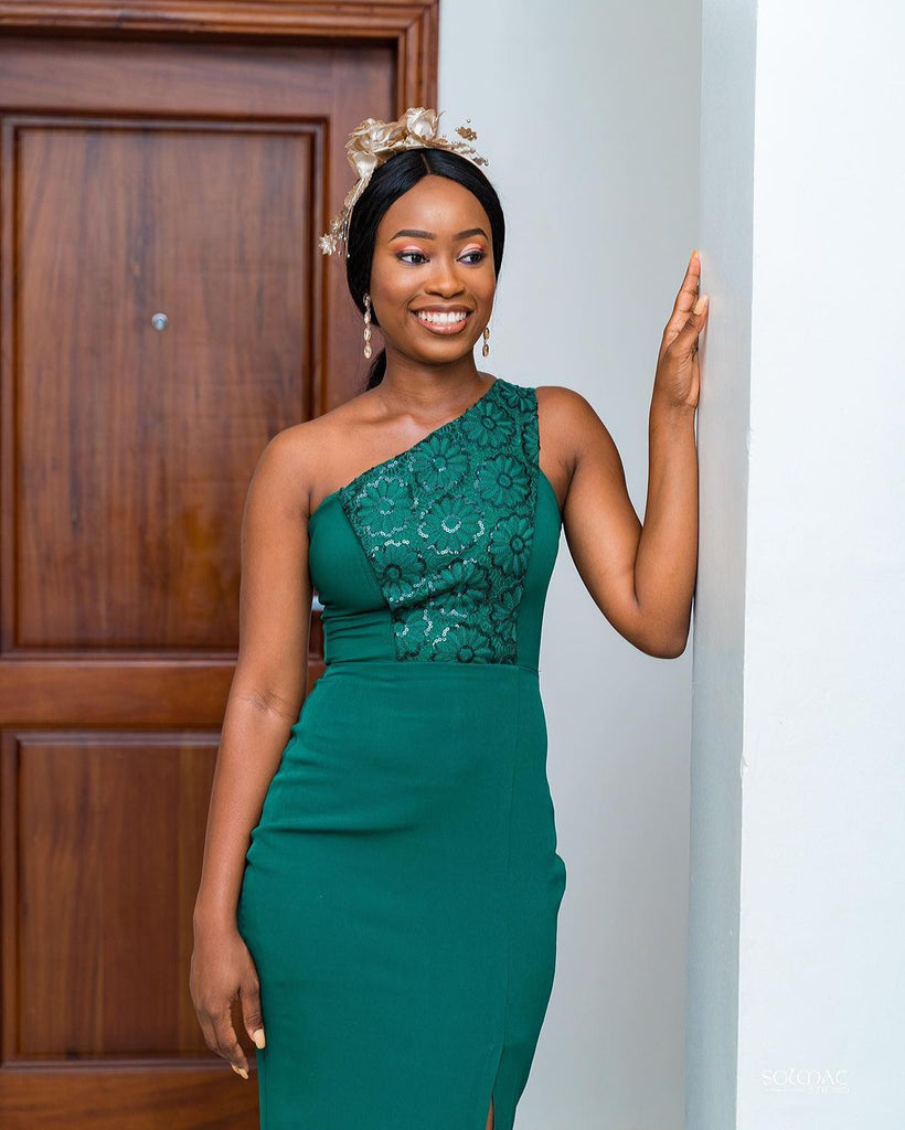 One-shoulder Mermaid Long Lace Sexy Slit Bridesmaid Dress, FC5930