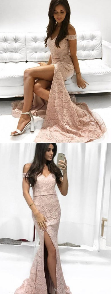 Off Shoulder Mermaid Prom Dresses, Lace Backless Floor-Length Prom Dresses, KX588