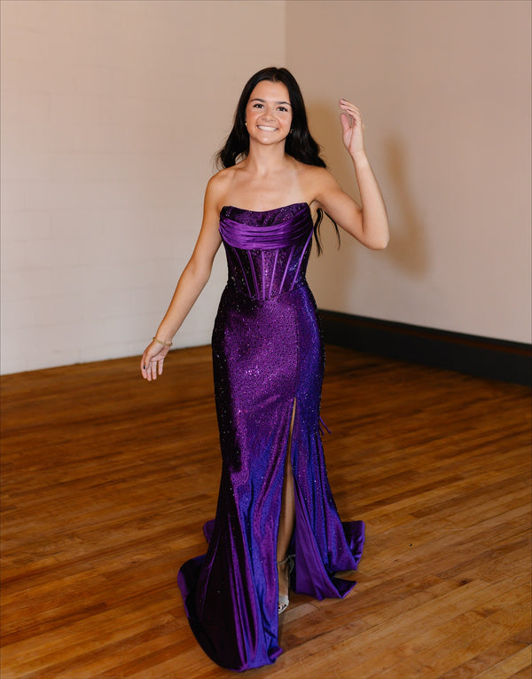 Charming Purple Mermaid Sparkle Sexy Slit Long Backless Prom Dresses,